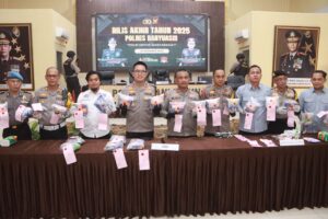 Banyuasin Informasirakyat – Polres Banyuasin menggelar konferensi pers akhir tahun 2025 pada Rabu (31/12/2025) sekitar pukul 11.00 WIB di Gedung Serbaguna Sanika Satyawada Polres Banyuasin. Acara yang berlangsung hingga pukul 12.00 WIB tersebut berjalan aman dan kondusif.
